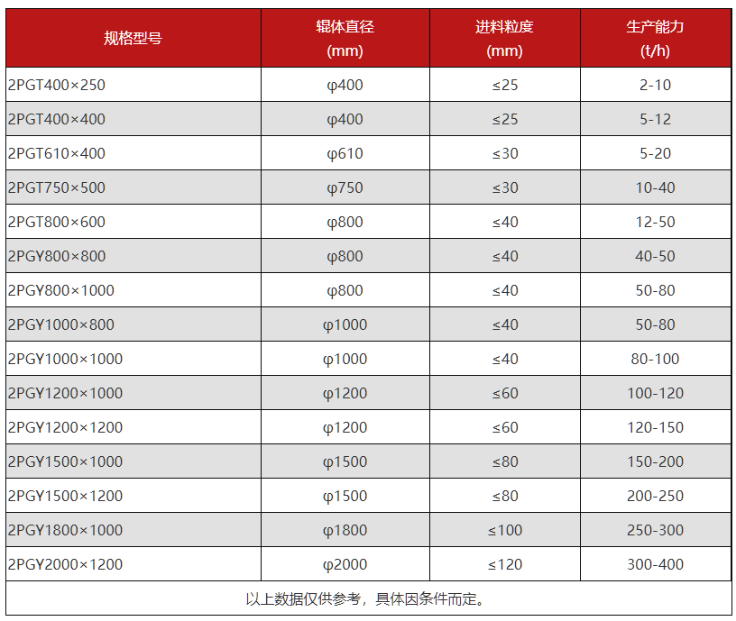 1、400×250,400×400,610×400,時產(chǎn)2-20噸左右,屬于小型彈簧對輥制砂機(jī),適合中小型砂廠投資使用。